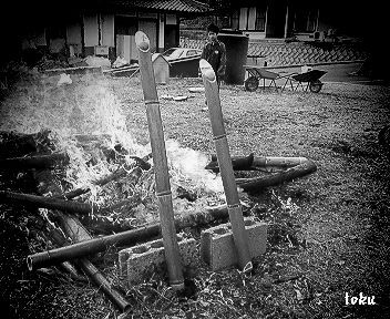 竹にお酒を入れダイダイでふたをして。。。